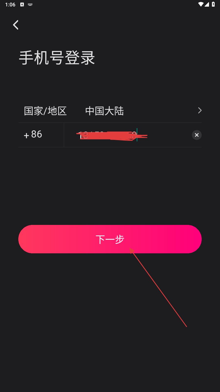 3、進入到手機號登錄的頁面內,輸入要登錄的手機號,再點擊下一步的按鈕。