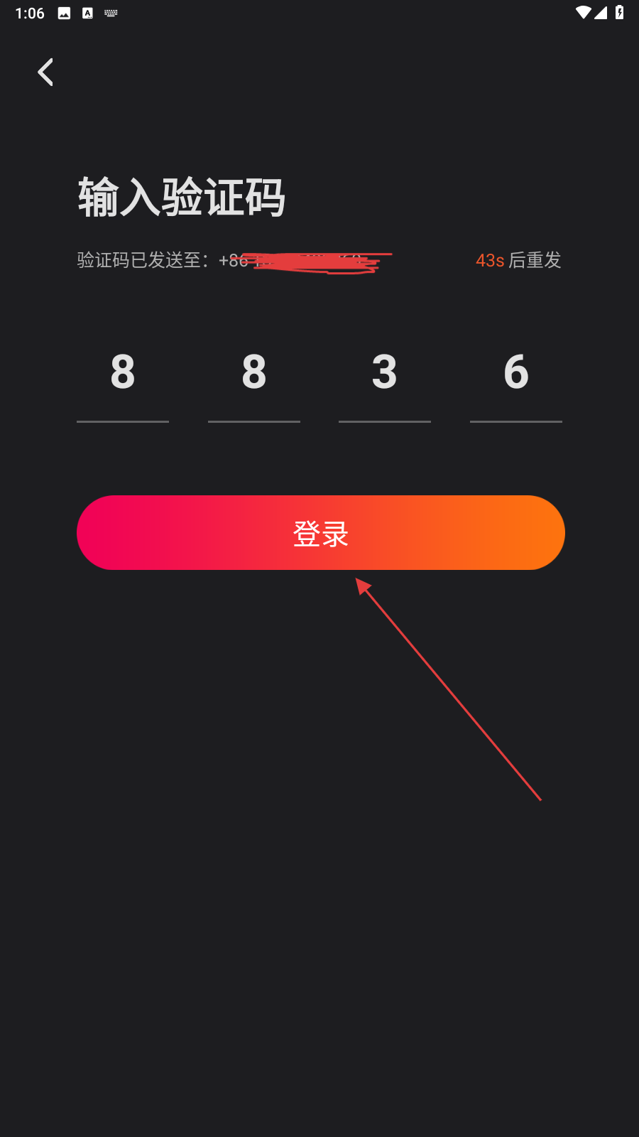 4、將收到的驗證碼輸入其中后,再點擊登錄的按鈕即可。