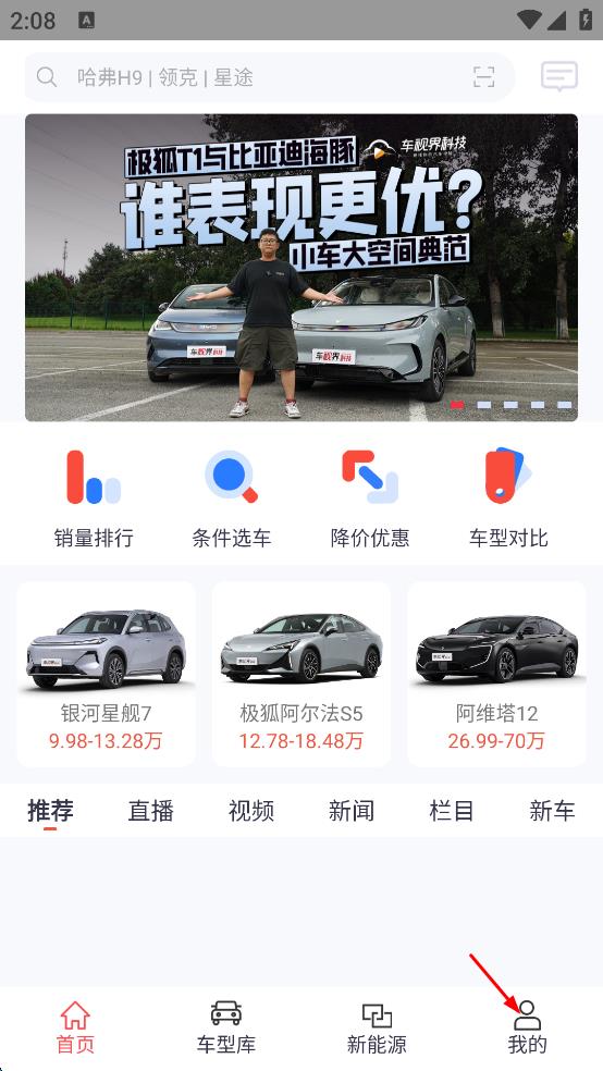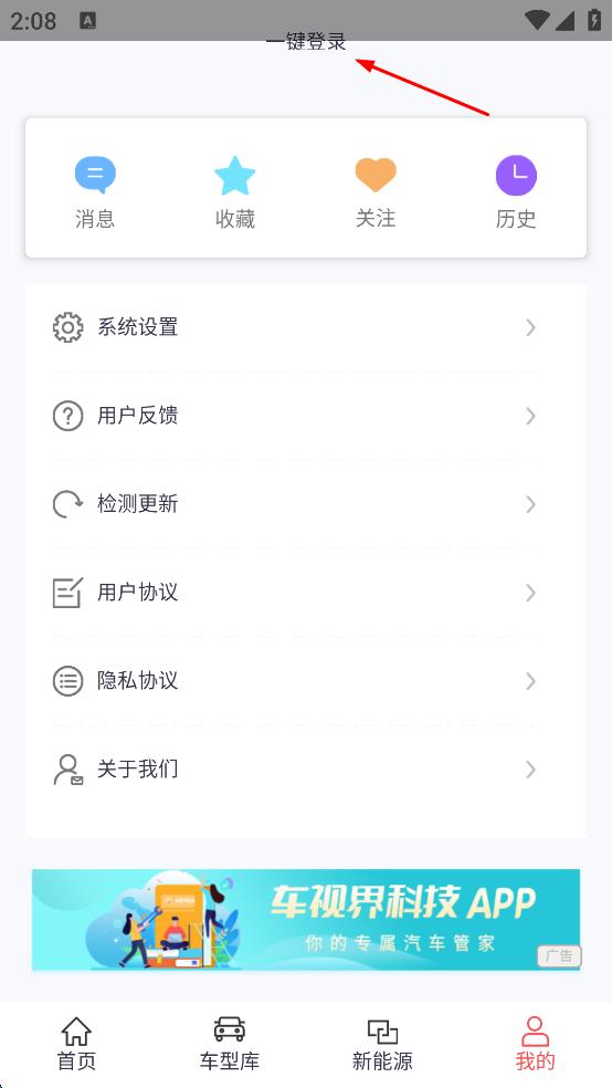 2、在車視界科技首頁,點擊右下角我的,進入個人頁面。