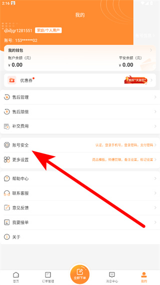 2、在個人頁面中,找到并點擊賬號安全選項,進(jìn)入賬號安全設(shè)置頁面。