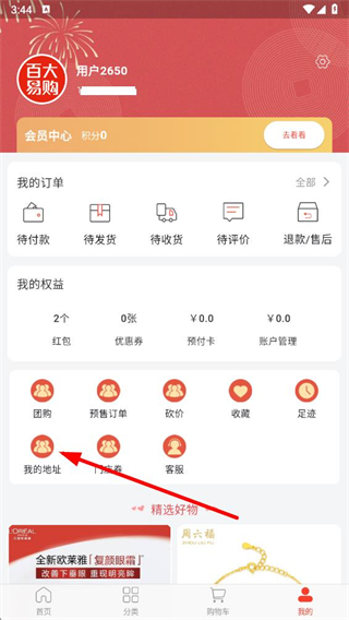 2、在個(gè)人頁面找到我的地址選項(xiàng)并點(diǎn)擊,進(jìn)入我的地址管理界面。