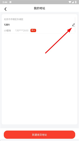 3、在我的地址界面中,找到需要修改的地址,點(diǎn)擊右側(cè)編輯圖標(biāo),進(jìn)入編輯狀態(tài)。