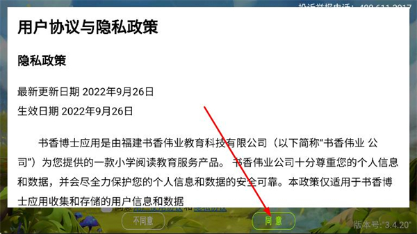 1、打開書香博士,在彈出的隱私政策界面點擊同意。