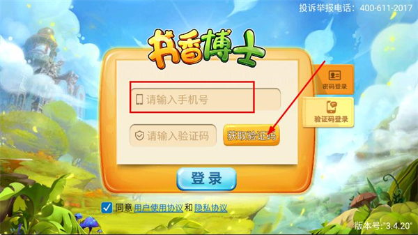 3、在輸入框中輸入手機號碼,并點擊獲取驗證碼。