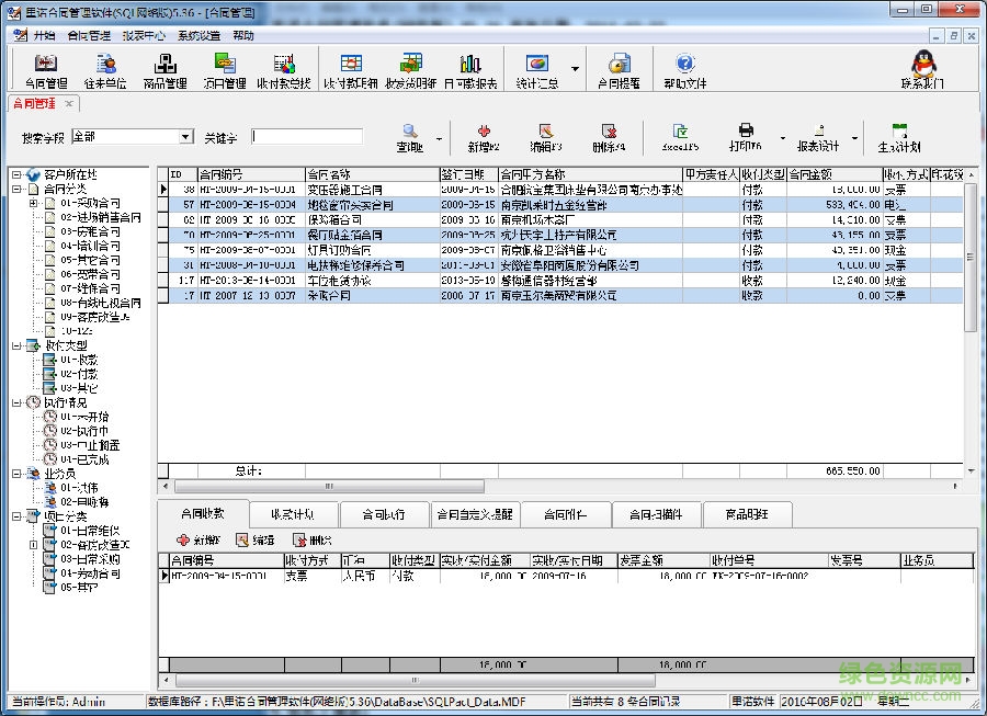 里諾合同管理軟件(SQL網(wǎng)絡(luò)版)是一款可以架構(gòu)在局域網(wǎng)內(nèi)多臺(tái)電腦數(shù)據(jù)共享操作使用的合同管理軟件。軟件集合同起草、合同簽訂、合同收付款計(jì)劃,合同收付,結(jié)算安排、執(zhí)行進(jìn)展、到實(shí)際結(jié)款以及對(duì)合同結(jié)款情況統(tǒng)計(jì)分析功能于一體的管理軟件。軟件界面簡(jiǎn)潔直觀,功能齊全,可方便的幫助你對(duì)供貨商和客戶的合同進(jìn)行管理,協(xié)助您完成應(yīng)收應(yīng)付款分析,自動(dòng)統(tǒng)計(jì)所有供貨商和客戶的應(yīng)收應(yīng)付款額,為您大大節(jié)省工作時(shí)間,提高工作效率。里諾合同管理軟件將是您明智的選擇,將會(huì)是你合同管理的好助手!