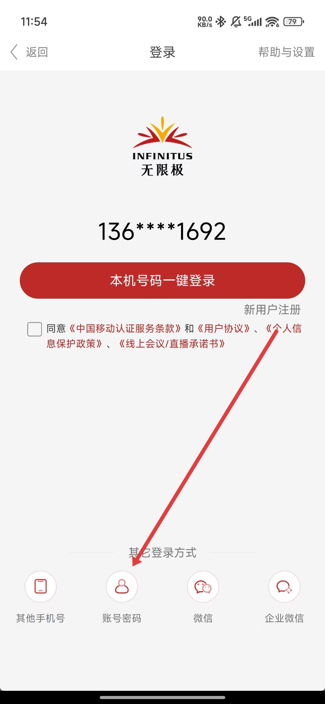 3、進入到登錄頁面后,可以點擊下方賬號密碼按鈕,切換登錄方式。