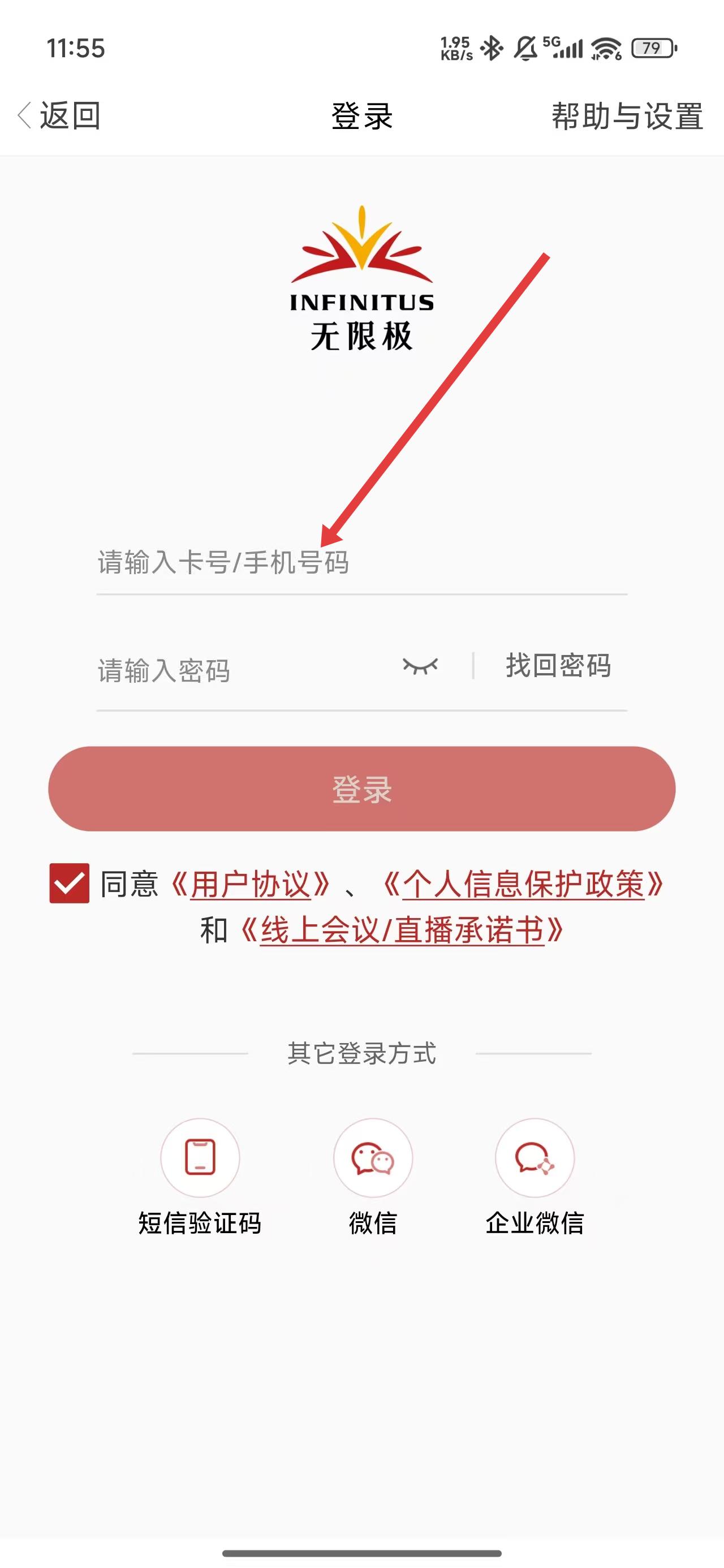 4、點擊輸入框,依次填寫手機號碼和密碼后完成登錄操作。