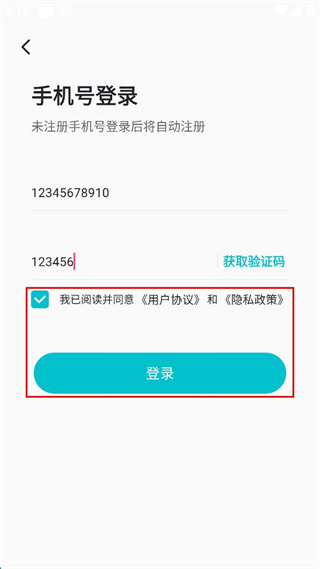 4、勾選已閱讀并同意用戶協(xié)議和隱私政策,點(diǎn)擊登錄按鈕完成登錄操作。