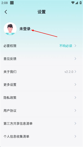 2、在設(shè)置頁(yè)面點(diǎn)擊未登錄選項(xiàng),進(jìn)入手機(jī)號(hào)登錄頁(yè)面。