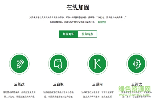 360加固保專為移動應用開發(fā)者提供安全服務,包括APP應用加固、盜版監(jiān)測、崩潰日志分析、數(shù)據(jù)分析、應用升級等。360加固保能有效防止APP被、反編譯、二次打包、惡意篡改,從根源上保護開發(fā)者的收入和利益。