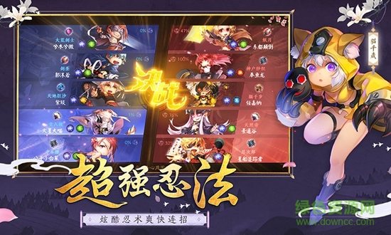 蠢萌戰(zhàn)斗形象結(jié)合二次元立繪卡牌形象引領(lǐng)和風潮流,戰(zhàn)士、坦克、法師、射手、輔助五大忍職自由搭配,裝備、天賦、升星、覺醒、護靈等養(yǎng)成玩法圓你SSS忍者夢!