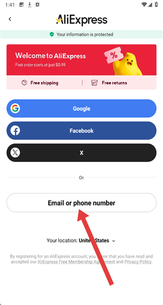 2、在進入注冊主頁中,可以點擊下方按鈕,以電子郵箱的方式進行注冊賬號。