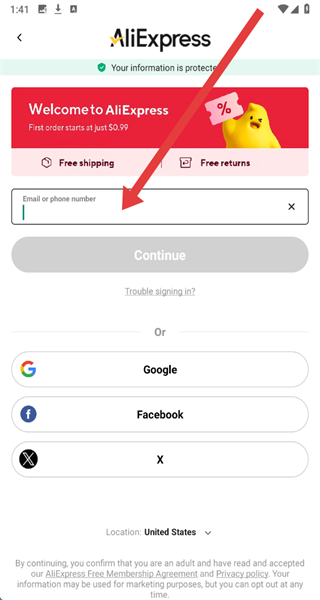 3、在進入到注冊頁面中,點擊輸入框填寫郵箱后,點擊Continue進入下一步。