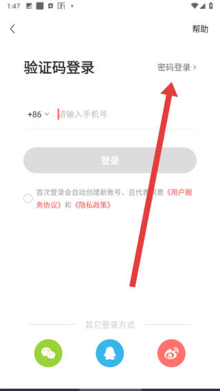 2、在進(jìn)入到登錄頁面后,可以點(diǎn)擊上方密碼登錄按鈕,切換登錄方式。