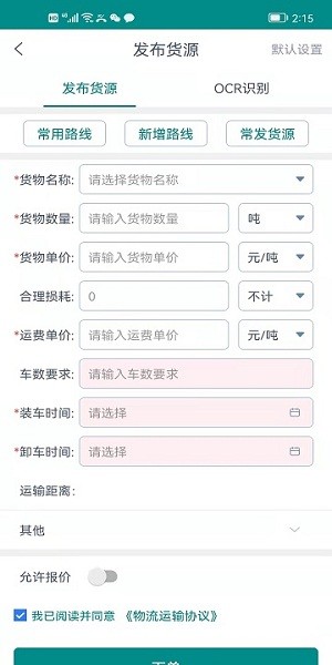 1、發(fā)布貨單的時(shí)候貨主可以自行報(bào)價(jià),每個(gè)貨單的運(yùn)費(fèi)價(jià)格可以知己輸入;