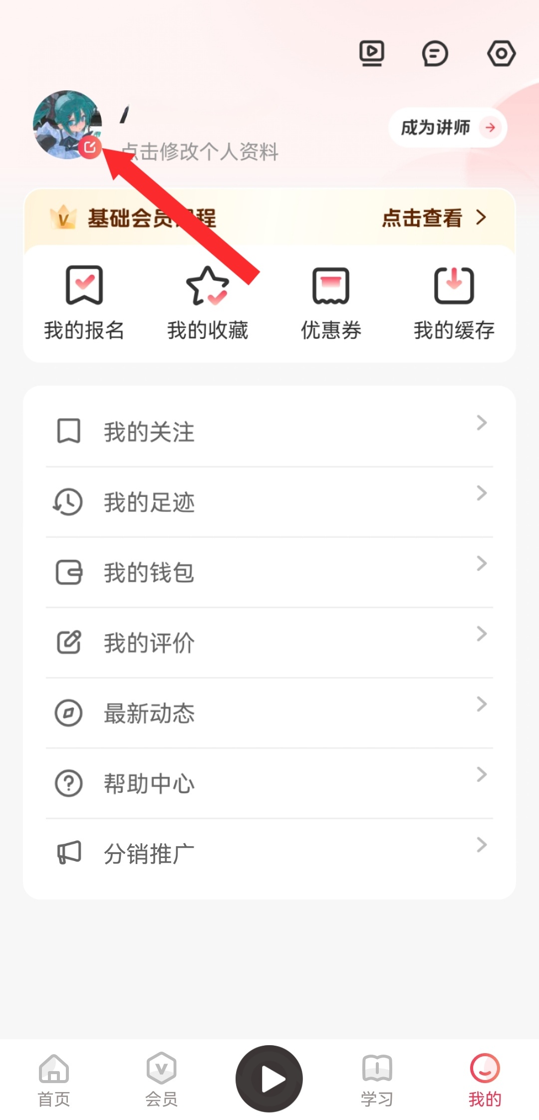 2、在個人頁面,點擊頭像旁的編輯圖標(biāo),進入編輯我的資料頁面。