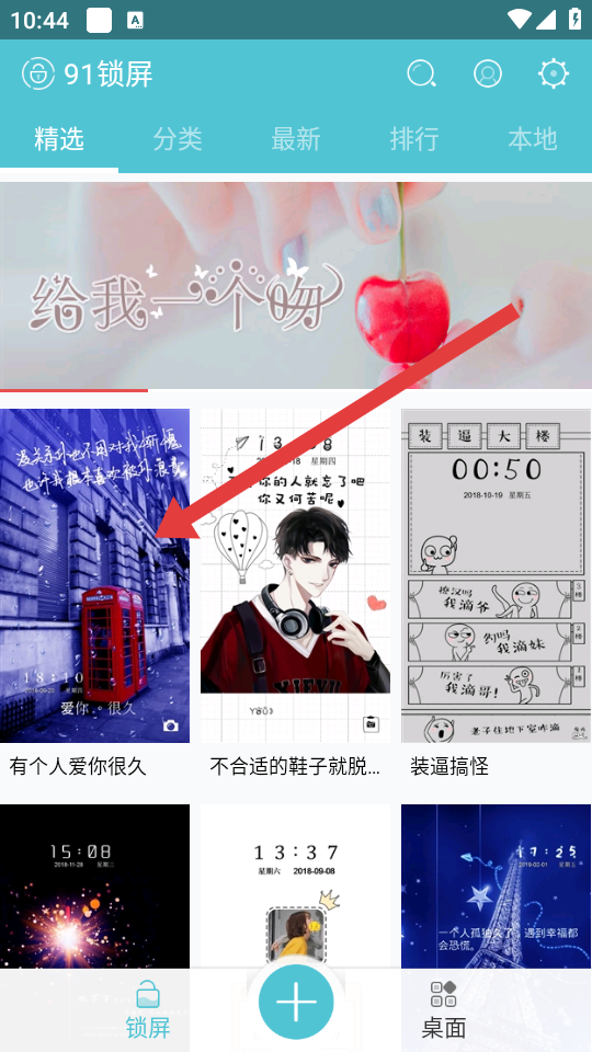 1、打開91智能鎖屏APP,在頁面中點擊想要使用的鎖屏壁紙,進(jìn)入壁紙詳情頁面。