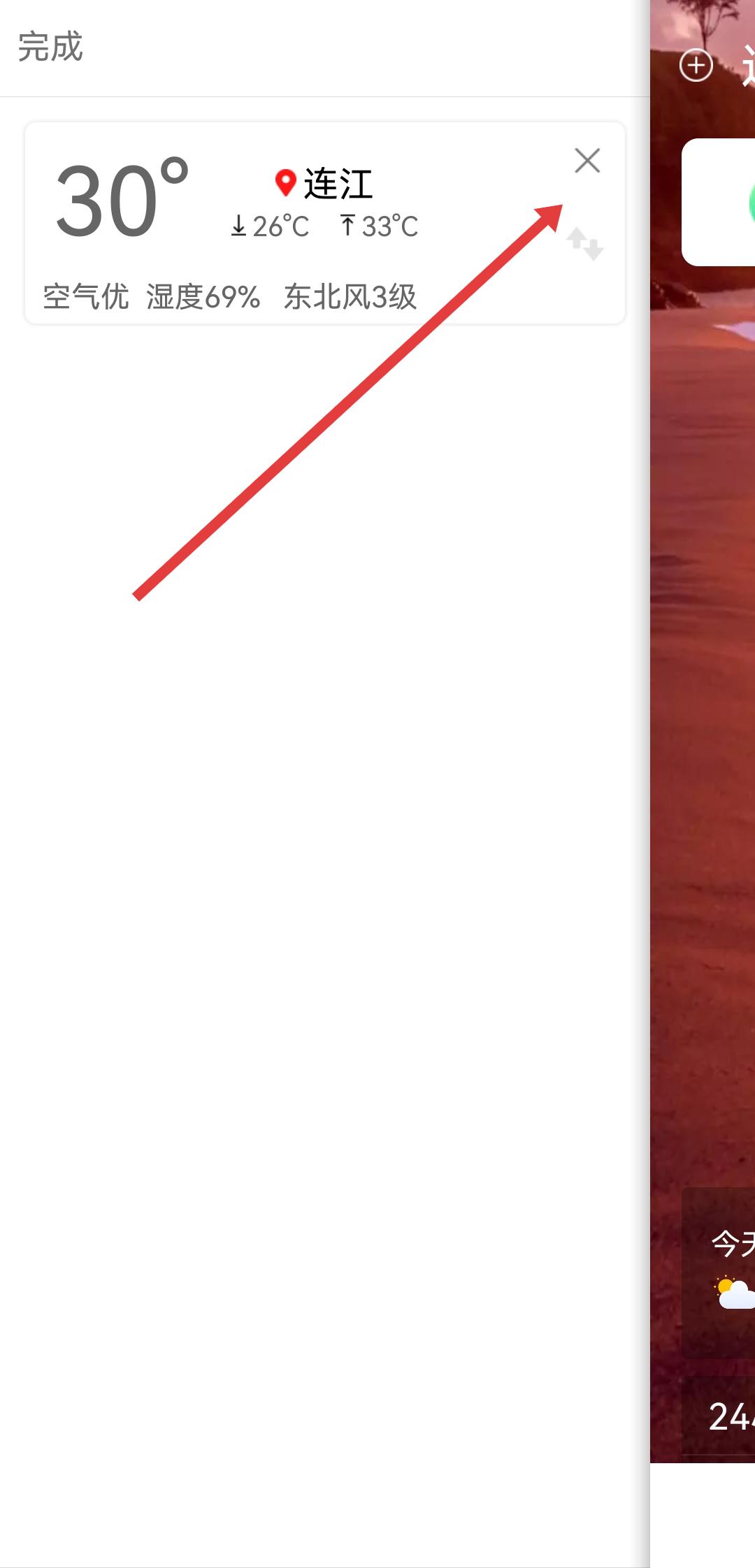 3、找到需要?jiǎng)h除的城市卡片,點(diǎn)擊卡片右上角的×圖標(biāo),即可將該城市從列表中刪除。