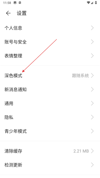 3、在設(shè)置界面里,找到深色模式選項(xiàng)并點(diǎn)擊。