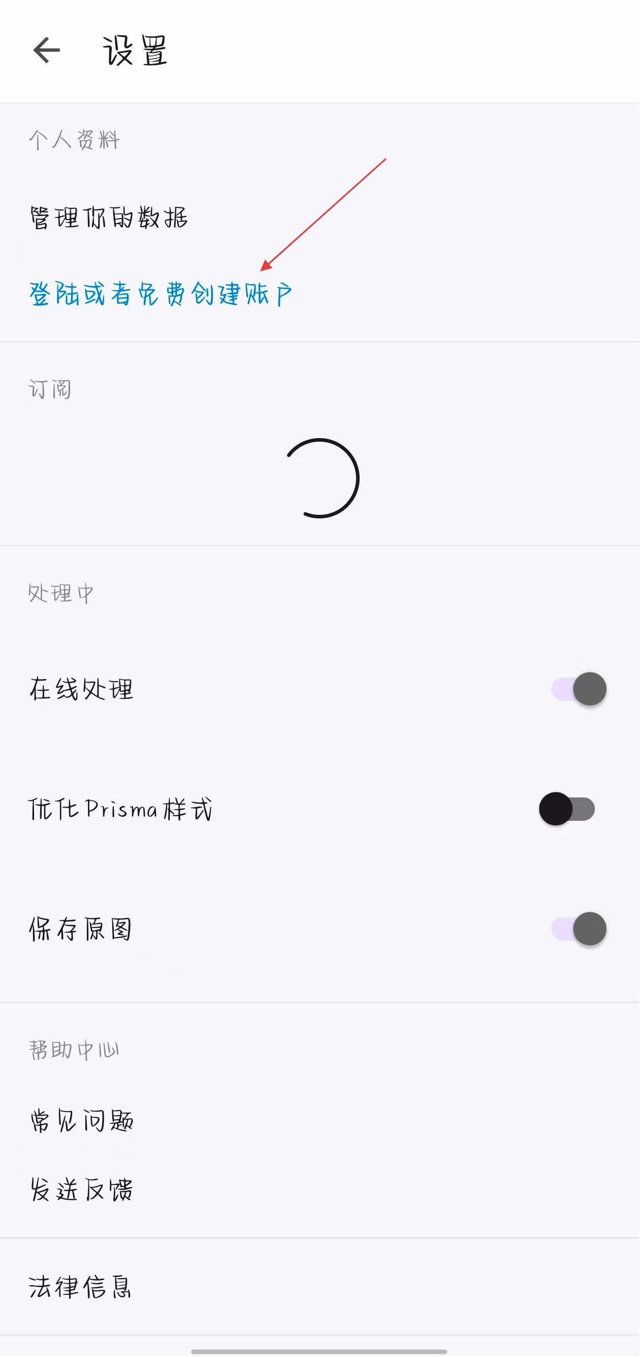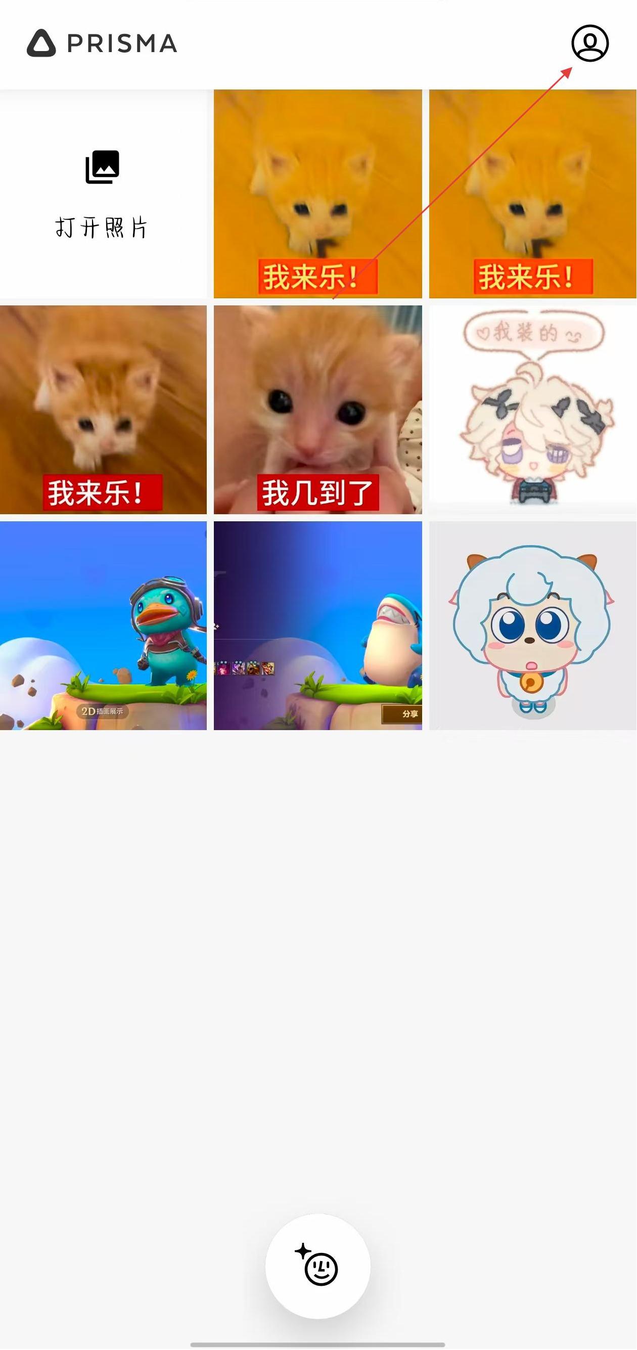 1、打開Prisma軟件,點(diǎn)擊頁面右上角的個人中心圖標(biāo),進(jìn)入設(shè)置頁面。