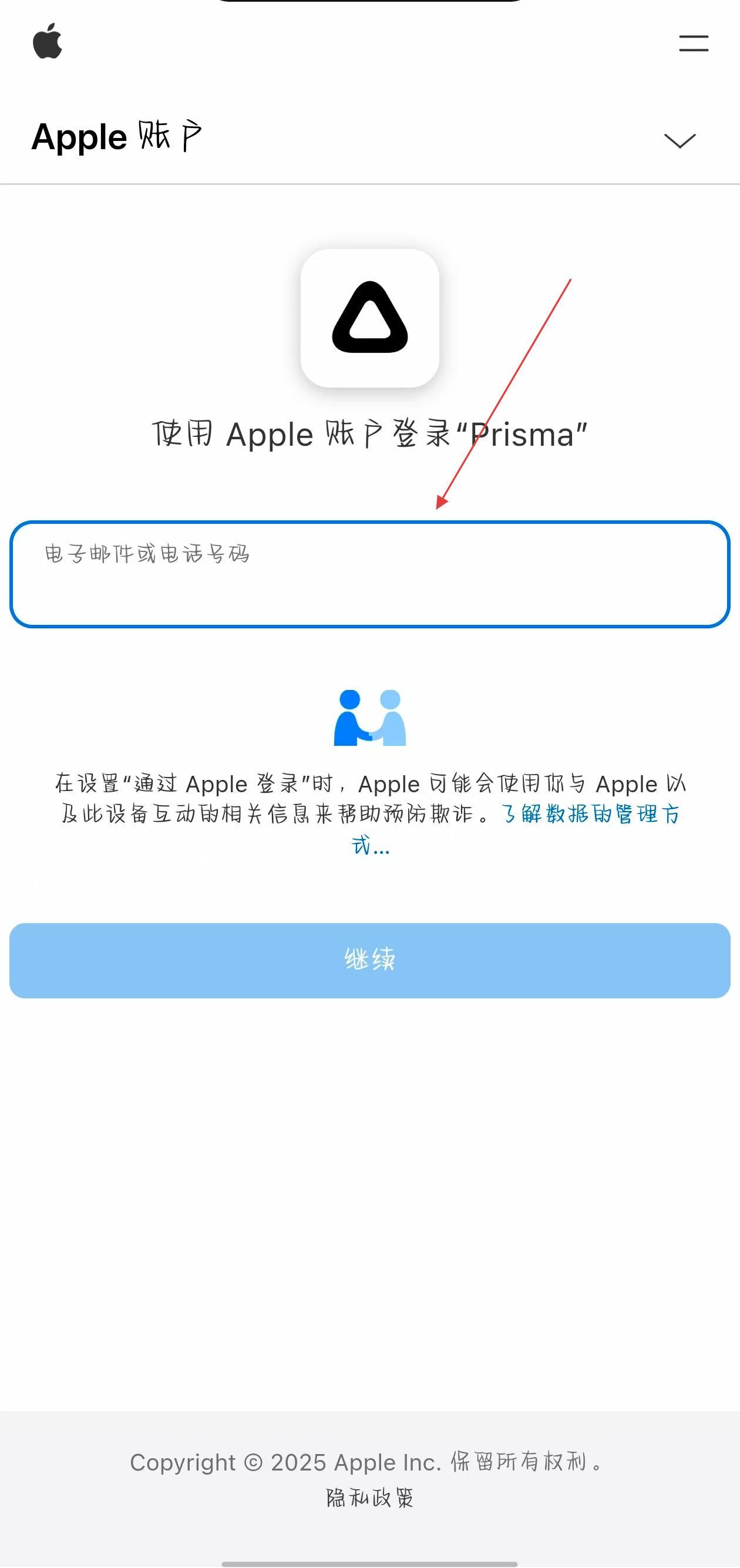 4、在Apple賬戶登錄界面,輸入電子郵件或電話號碼,即可完成登錄。