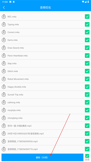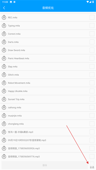3、在音頻優(yōu)化的頁(yè)面內(nèi),點(diǎn)擊右下角全選的按鈕。