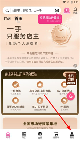 1、打開一手服裝批發(fā)app,點(diǎn)擊底部導(dǎo)航欄中的我的選項。