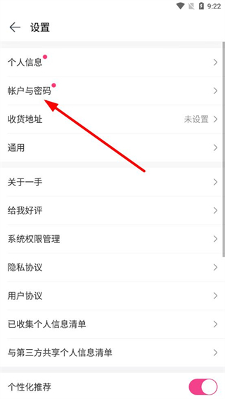 3、在設(shè)置界面中,點(diǎn)擊帳戶與密碼選項,進(jìn)入賬號與密碼管理頁面。