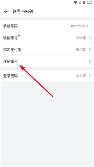 4、在賬號與密碼頁面,點(diǎn)擊注銷賬號選項,進(jìn)入注銷賬戶頁面。