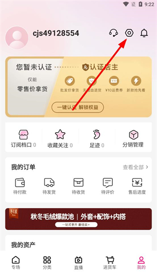 2、在我的頁面,點(diǎn)擊頭像右側(cè)的設(shè)置圖標(biāo),進(jìn)入設(shè)置界面。