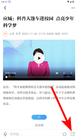 3、在視頻詳情頁(yè)面,點(diǎn)擊右下角分享按鈕,彈出分享選項(xiàng)界面。