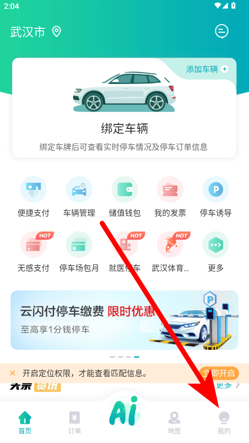 1、打開武漢停車APP,點擊底部導航欄的我的選項,進入個人界面。
