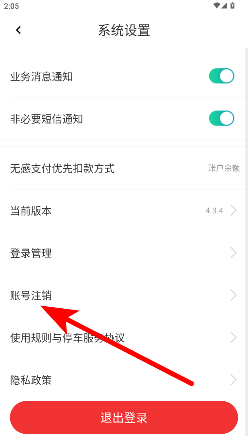 3、在系統(tǒng)設置頁面里,點擊賬號注銷選項。