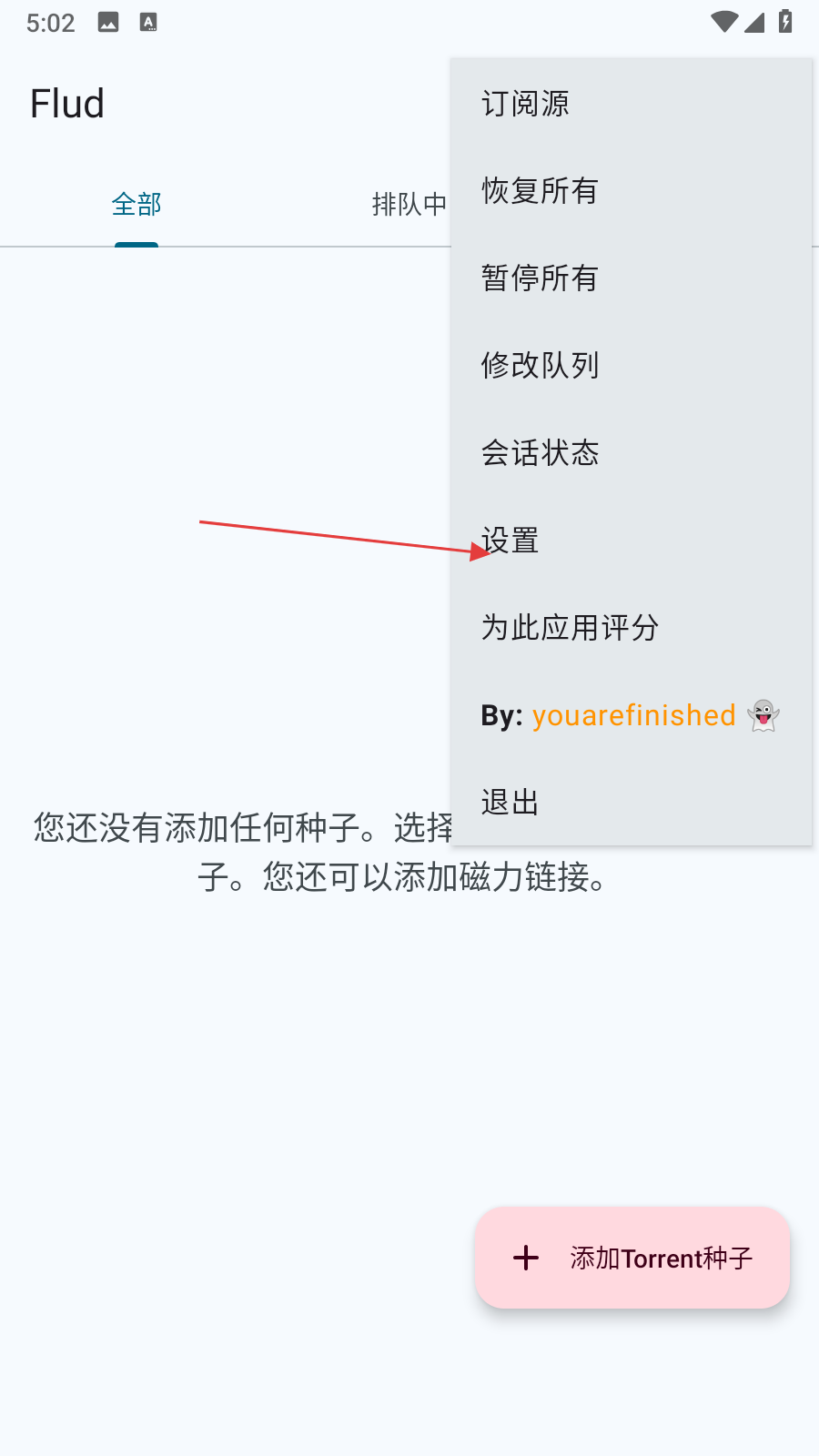 2、在彈出的菜單列表中,點擊設置選項,進入Flud的設置頁面。