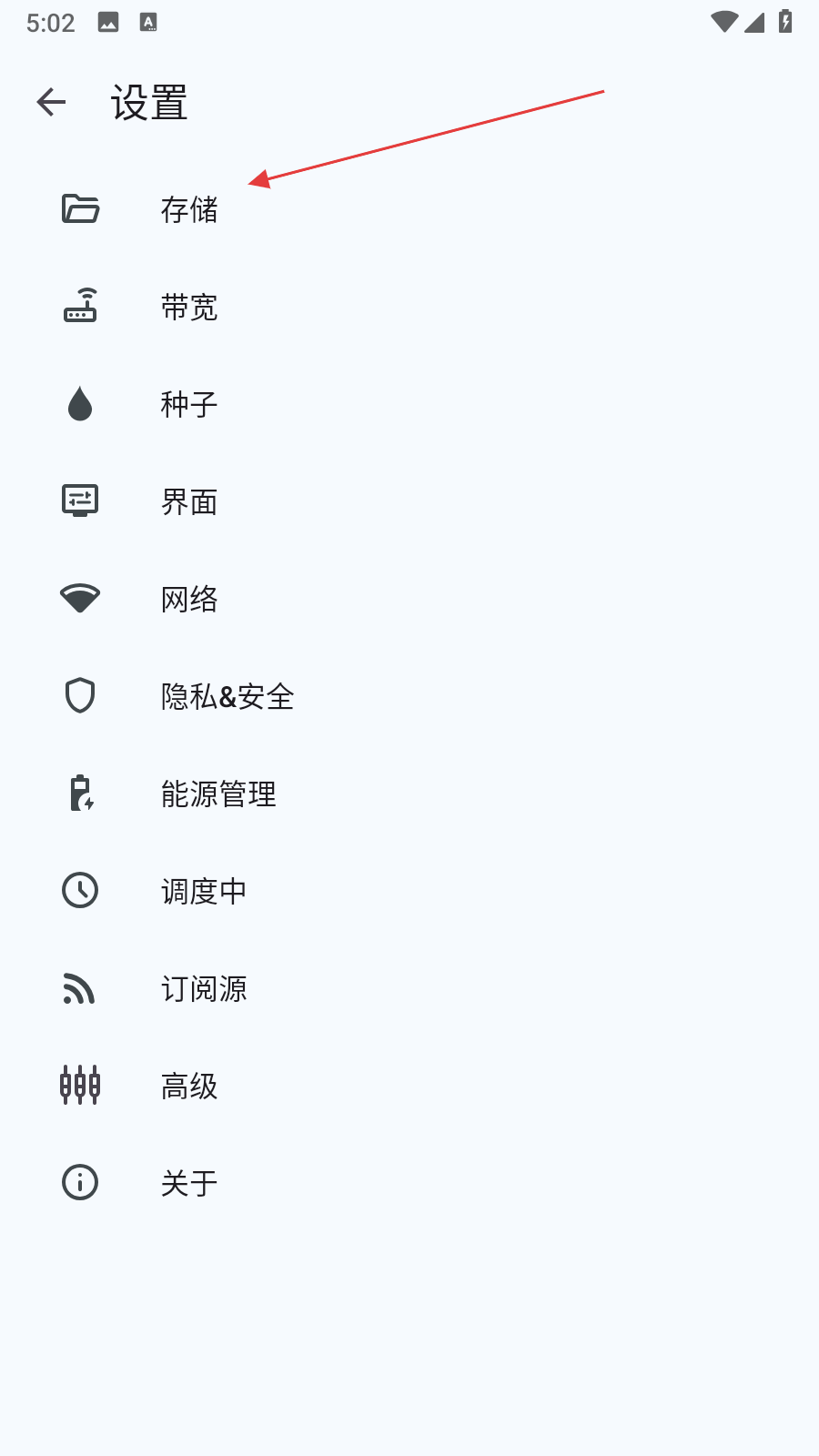 3、在設置頁面里,找到并點擊存儲選項,進入存儲設置界面,該界面會顯示當前的存儲路徑等信息。