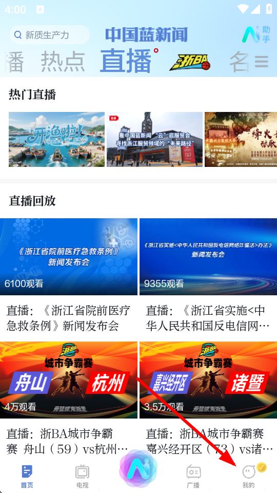 1、在中國(guó)藍(lán)新聞的首頁,點(diǎn)擊底部我的按鈕,進(jìn)入個(gè)人頁面。