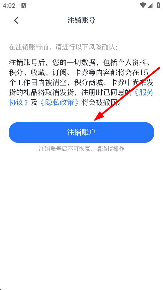 4、在注銷說明的頁面,點(diǎn)擊注銷賬戶按鈕,完成賬號(hào)注銷操作。