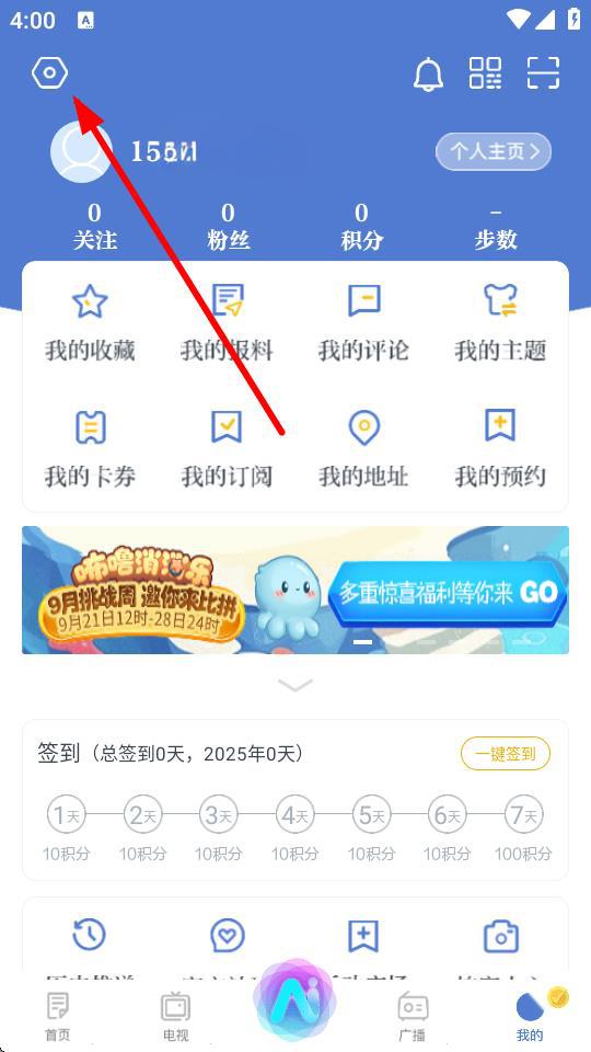 2、在個(gè)人的頁面,需要點(diǎn)擊左上角設(shè)置圖標(biāo),進(jìn)入設(shè)置界面。