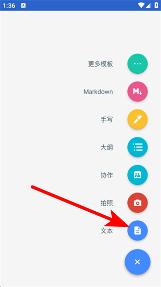 2、在創(chuàng)建選項的頁面,選擇文本,進(jìn)入新建文本筆記編輯頁面。