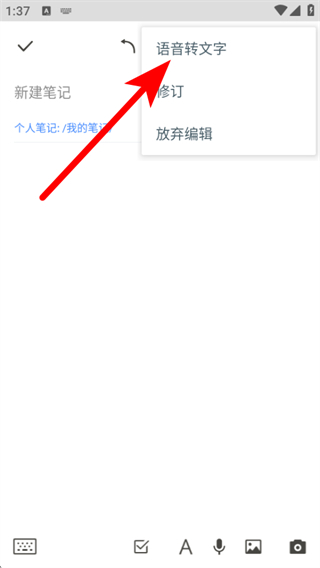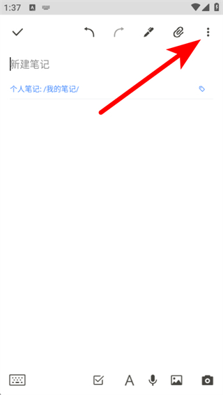 3、在文本筆記編輯頁面,點擊右上角三點菜單按鈕,彈出功能選項。