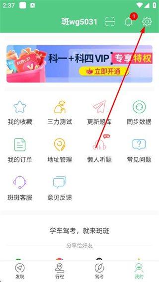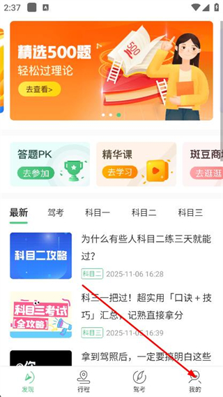 1、打開斑斑駕道,點(diǎn)擊底部導(dǎo)航欄我的選項(xiàng)。