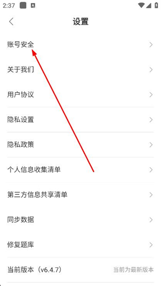 3、進(jìn)入設(shè)置頁面后,點(diǎn)擊上方的賬號(hào)安全選項(xiàng)。