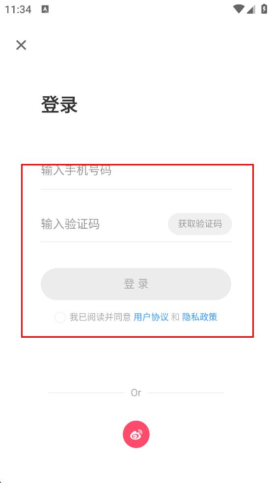 4、在登錄界面,勾選同意用戶協(xié)議,然后輸入手機號碼,獲取驗證碼,待收到驗證碼后輸入,最后點擊“登錄”按鈕即可。