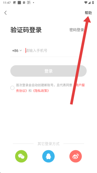 1、如果在登錄時遇到賬號無法登錄情況,可以點擊右上方幫助按鈕解決。