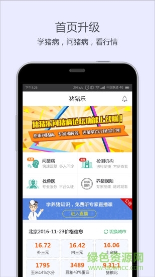 豬豬樂是一款專注于養(yǎng)豬行業(yè)的生活資訊app.是一款養(yǎng)豬戶必備的生活實(shí)用軟件,這里提供了養(yǎng)豬行業(yè)相關(guān)資訊的分享,讓養(yǎng)豬戶跟上時(shí)代的腳步,并且還可以在線詢問專業(yè)獸醫(yī),及時(shí)解決小豬仔的健康問題,還能在線找獸醫(yī),在線送檢,非常智能方便。同時(shí)促進(jìn)養(yǎng)豬行業(yè)的更好發(fā)展。需要得朋友趕快來綠色資源網(wǎng)下載體驗(yàn)吧!