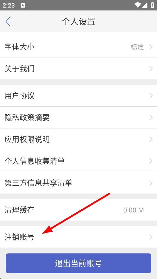 2、在個(gè)人設(shè)置界面中,找到并點(diǎn)擊注銷賬號(hào)選項(xiàng)。