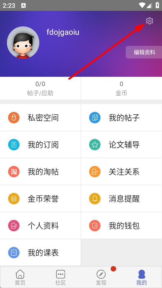 1、在個(gè)人頁面右上角,點(diǎn)擊設(shè)置圖標(biāo)齒輪形狀進(jìn)入個(gè)人設(shè)置界面。