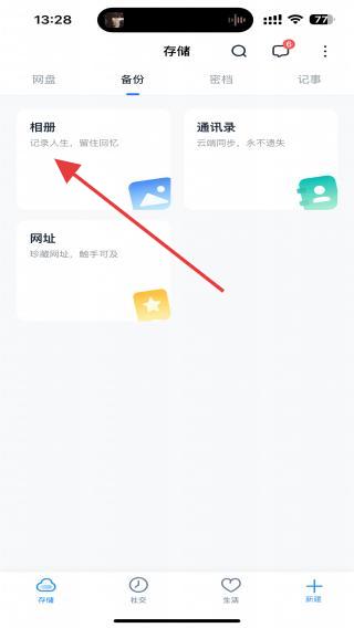 2、在備份頁面內(nèi),點擊相冊的按鈕。