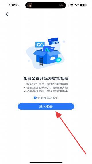 3、勾選新照片自動備份后,再點擊進入相冊的按鈕。