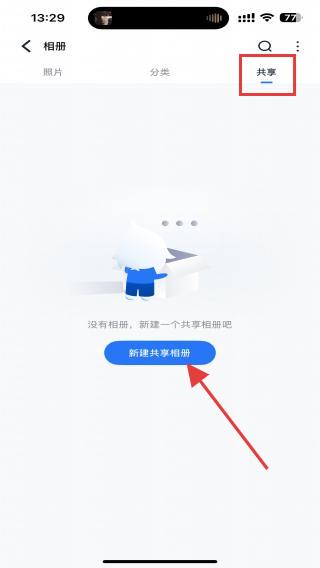 4、進入到相冊界面內(nèi),切換共享的標(biāo)簽,再點擊新建共享相冊。